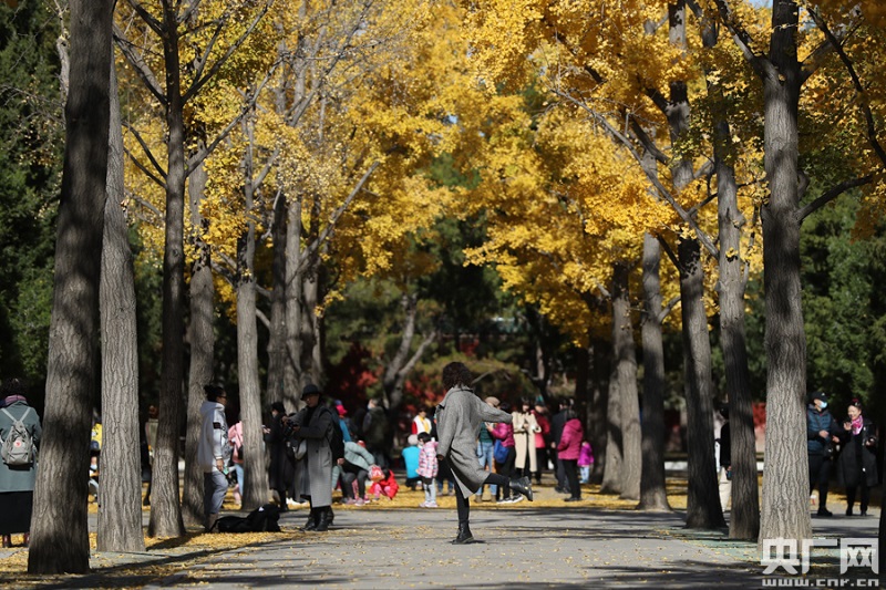 11月3日,地壇公園,市民在銀杏樹下拍照(央廣網(wǎng)記者 韓靖 攝)