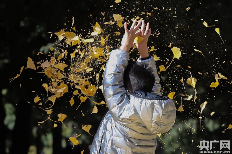 11月3日,地壇公園,一個小男孩在銀杏樹下玩耍(央廣網(wǎng)記者 韓靖 攝)
