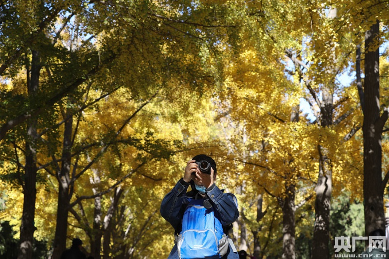11月3日,五塔寺,市民在古銀杏樹下拍照(央廣網(wǎng)記者 韓靖 攝)