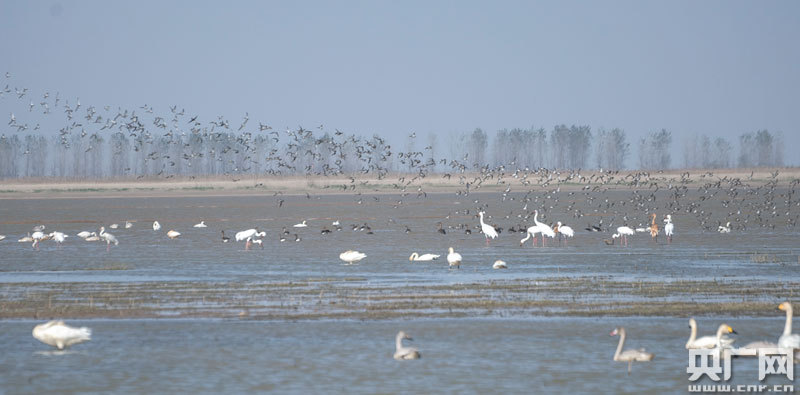 候鳥(niǎo)在淺水灘上棲息(央廣網(wǎng)發(fā) 通訊員章斌 攝)