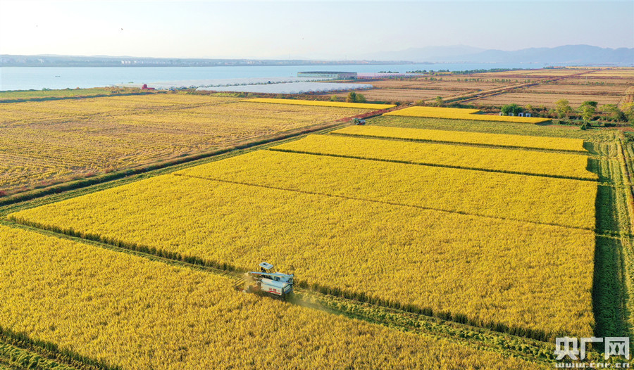 金色稻田正在收割(央廣網(wǎng)發(fā) 通訊員供圖)