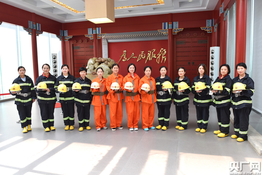 毛澤東同志紀(jì)念館女子志愿消防隊(duì)合影照(央廣網(wǎng)發(fā) 朱亞軍 攝)