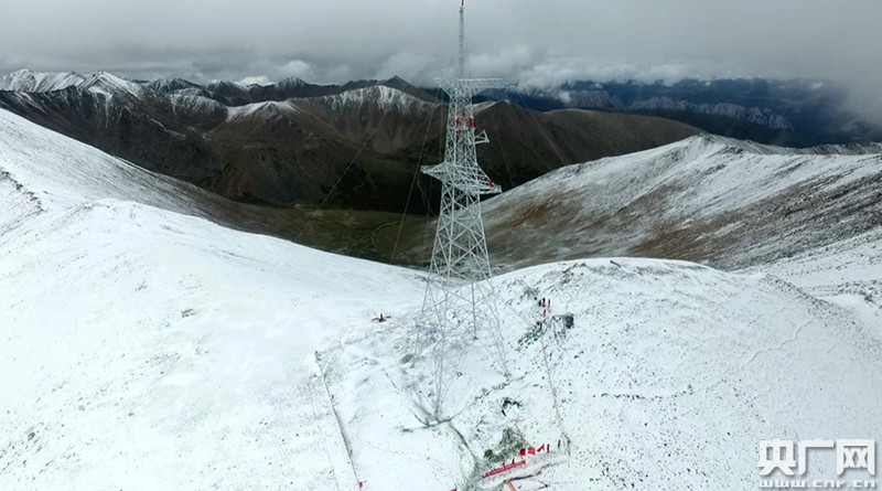 位于海拔5295米的藏中電力聯(lián)網(wǎng)工程最高塔位(央廣網(wǎng)發(fā) 盧忠東 攝)