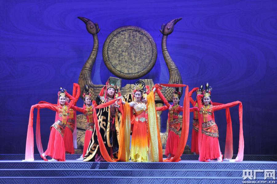 大型原創(chuàng)漢劇《優(yōu)孟衣冠》湖北荊州震撼首演 央廣網(wǎng)荊州6月22日消息(記者左艾甫 荊州臺記者佘國俊)一曲氣勢恢宏的文化贊歌,一段傳揚千古的君臣佳話,一部弘揚荊楚文化的大戲。近日,由湖北省荊州市藝術劇院、湖北省藝術研究所聯(lián)袂打造的大型原創(chuàng)漢劇《優(yōu)孟衣冠》在湖北省荊州市震撼首演,用氣勢恢弘的楚宮樂舞和飽含著荊風楚韻的舞臺向觀眾展開了一幅楚文化的瑰麗畫卷。 -