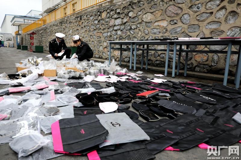 大連海關(guān)關(guān)員核對(duì)侵權(quán)物品(央廣網(wǎng)發(fā) 劉偉偉 攝)