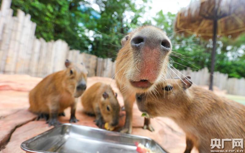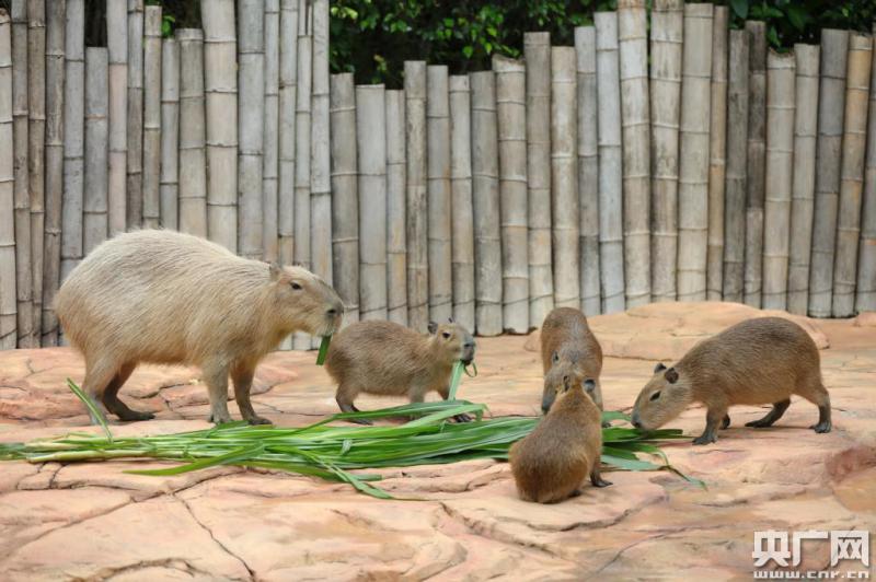 連育四只小水豚較為罕見(jiàn)