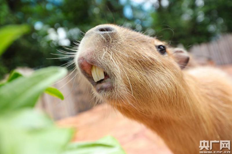 據(jù)介紹,水豚是“世界上最大的嚙齒動(dòng)物”,成年體重最大可達(dá)132斤,身長(zhǎng)可超過(guò)134cm,因此總是被戲稱(chēng)為世界上最大的“老鼠”。水豚憨態(tài)可掬,最常見(jiàn)的狀態(tài)就是露出四只大板牙不停吃吃吃,很是魔性,被封為新一代“網(wǎng)紅”。