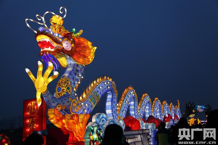 一條燈光組成的秦龍?jiān)诠懦菈陟谏x(央廣網(wǎng)記者 雷愷 攝) -