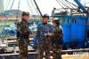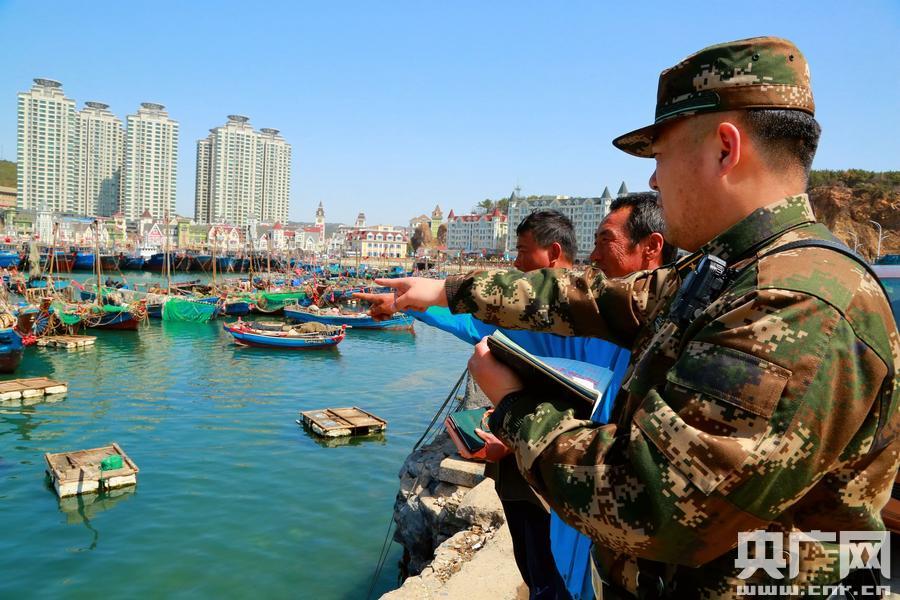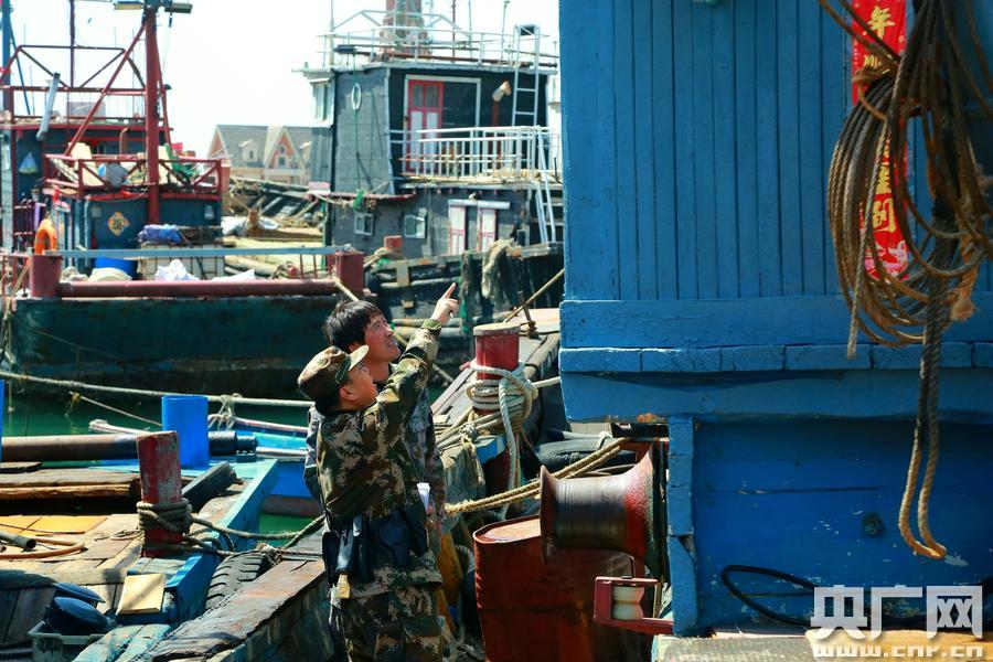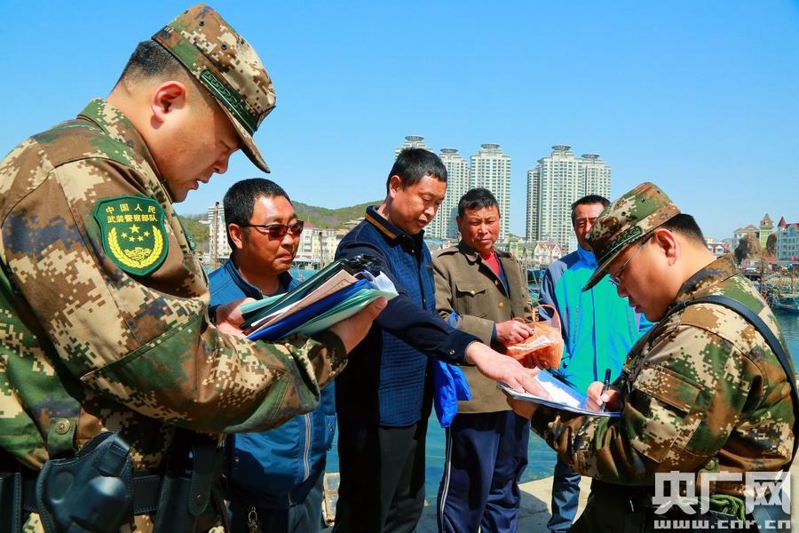 邊防官兵正在進行漁船民登記,并進行證件查驗 -