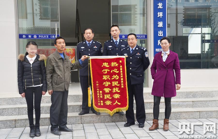湖北保康民警解救拐騙失蹤9年少女 央廣網(wǎng)武漢4月25日消息(記者張毛清 通訊員歐陽(yáng)智慧 丁炎)湖北?瞪倥畷喳悾ɑ└赣H早逝,母親離家,自己外出打工又遭拐騙。9年來(lái),曉麗的奶奶天天以淚洗面,叔叔秦光明輾轉(zhuǎn)多地尋找無(wú)果。 今年3月30日,一位好心人透露,曉麗人在宜昌。因她被強(qiáng)制勞動(dòng)而無(wú)法脫身,叔叔秦光明急忙來(lái)到?悼h公安局龍坪派出所報(bào)警求助。 民警連續(xù)奔忙半個(gè)月,4月18日,曉麗終被解救回家,與爺爺奶奶團(tuán)圓。4月21日下午,曉麗的爺爺奶奶因行動(dòng)不便,特地委托秦光明為龍坪派出所送來(lái)一面繡有“熱心為民找親人 忠于職守警民親”的錦旗(如圖),以表達(dá)他們對(duì)民警成功解救孫女的感激之情。 -