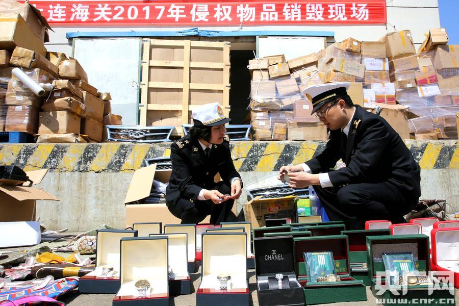 大連海關(guān)銷(xiāo)毀侵權(quán)貨物12萬(wàn)余件(央廣網(wǎng)發(fā)林戈攝) 央廣網(wǎng)大連4月28日消息(記者張四清 田彤 通訊員趙晨星)大連海關(guān)28日通報(bào)說(shuō),日前,這個(gè)海關(guān)集中銷(xiāo)毀了自2015年以來(lái)查獲的12萬(wàn)余件侵權(quán)貨物。 -