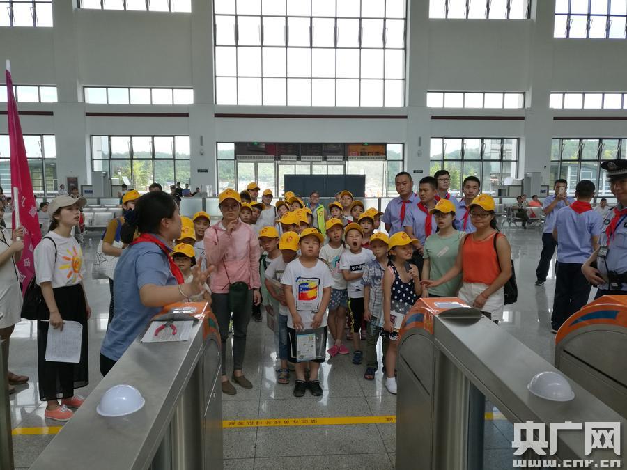 凱里車(chē)務(wù)段邀請(qǐng)留守兒童“領(lǐng)略高鐵文化”(央廣網(wǎng)發(fā) 龍幸攝) 央廣網(wǎng)重慶7月21日消息(記者劉湛 通訊員彭亮 龍幸)7月19日,凱里車(chē)務(wù)段三穗站聯(lián)合常春藤快樂(lè)兒童之家、三穗站線(xiàn)路車(chē)間舉辦主題為“領(lǐng)略高鐵文化、熟知乘車(chē)安全”的拓展活動(dòng),組織35名留守兒童及10名大學(xué)生志愿者走進(jìn)高鐵車(chē)站,實(shí)地觀(guān)摩中國(guó)高鐵的發(fā)展,開(kāi)拓留守兒童與大學(xué)生志愿者的文化視野。 -