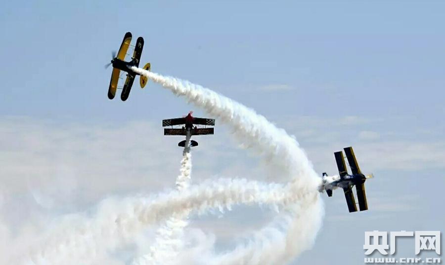 啟幕(央廣網(wǎng)記者 廉軍 攝) 央廣網(wǎng)銀川8月5日消息(記者廉軍 通訊員世鋒)“多彩鹽池·飛行盛宴——2017翼揚航空嘉年華”活動4日在寧夏鹽池縣通用機場盛大啟幕,3天中來自美國、瑞典、西班牙的3支表演隊和一批世界頂級飛行員將表演30余場精彩的飛行節(jié)目。 當(dāng)天西班牙卡斯特“蘇26”+美國斯蓋普“匹茲”模擬空戰(zhàn)煙火秀特技飛行表演、瑞典天貓“機翼行走”的特技飛行表演、瑞典維京單機特技飛行表演、大黃蜂單機特技飛行表演、高空跳傘花樣表演,給現(xiàn)場觀眾獻上了一份震撼的視覺盛宴。特邀世界特技飛行冠軍、歐洲冠軍、美國總冠軍等一批世界頂級飛行員完成相應(yīng)特技飛行科目,邀請美國好萊塢特技閃爆特技組完成一系列的模擬空戰(zhàn)場景。 據(jù)了解,鹽池縣搶抓低空經(jīng)濟和通航產(chǎn)業(yè)快速發(fā)展的重大機遇,充分發(fā)揮獨特的航空資源優(yōu)勢,全力打造全國通航跳傘運動基地、中國航空體育特色縣,通過舉辦系列節(jié)會和賽事,使老區(qū)鹽池的對外影響力和知名度得到極大提升,文化旅游產(chǎn)業(yè)實現(xiàn)了快速發(fā)展。 據(jù)介紹,今年的航空嘉年華是鹽池縣舉辦全國跳傘錦標(biāo)賽、全國定點跳傘大獎賽后又一次航空文化盛典,有美國、立陶宛的優(yōu)秀飛行隊表演航空特技,舉辦全國青少年航模大賽和全國模擬飛行優(yōu)秀選手賽,設(shè)置了各類游客互動飛行娛樂體驗項目,還穿插舉辦嘉年華音樂節(jié)和鹽池特色美食節(jié)系列活動。是寧夏近年來規(guī)模最大、內(nèi)容最豐富、氣勢最宏大的航空表演盛會,更是 一次普及航空知識、展示鹽池文化、寓教于樂的大眾航空狂歡節(jié)。 鹽池縣長戴培吉在開幕致辭中說,隨著我國低空空域管理改革的深入實施,通航產(chǎn)業(yè)已成為普及航空文化知識、強化國民航空意識、推動區(qū)域經(jīng)濟發(fā)展的新動能、新引擎。鹽池縣舉辦航空嘉年華活動對加快通航產(chǎn)業(yè)和文化旅游融合發(fā)展,推進經(jīng)濟綠色發(fā)展和產(chǎn)業(yè)轉(zhuǎn)型升級,都具有重要意義。