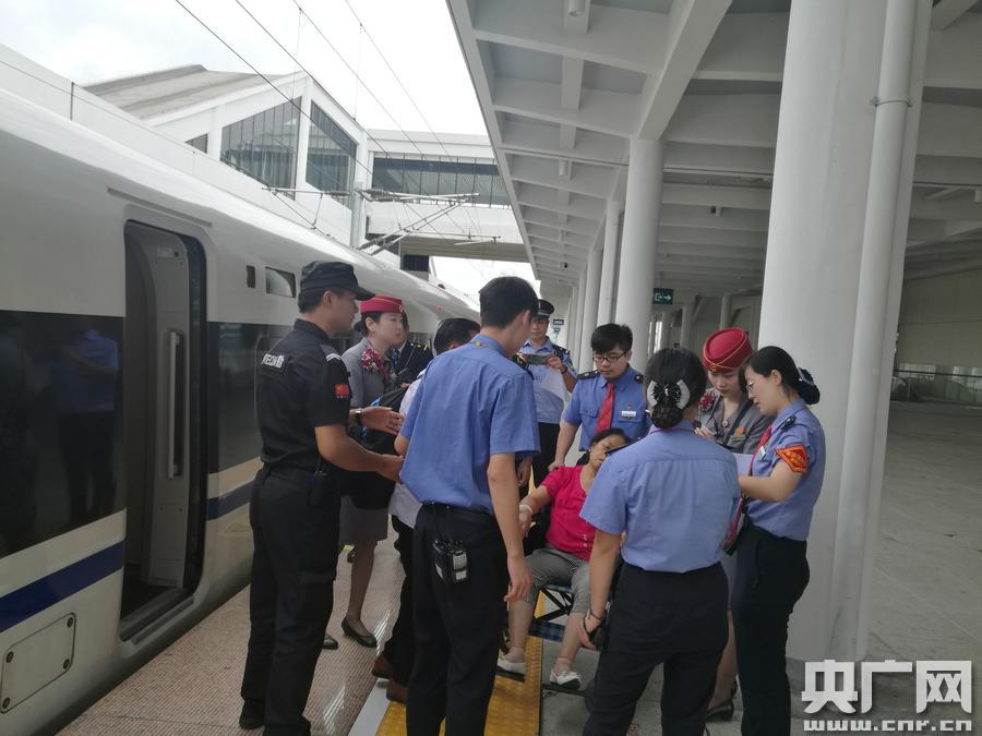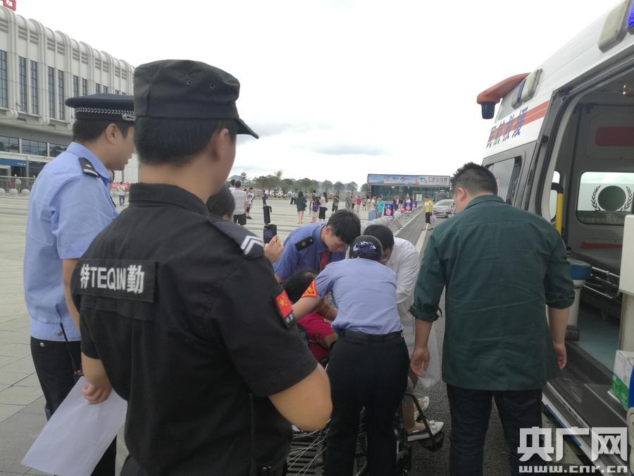 。ㄍ跷凝 柴玲玲攝) 央廣網(wǎng)重慶8月5日消息(記者劉湛 通訊員王文龍 柴玲玲)8月5日,9點22分,安順西站接到列車行調(diào)電話通知“安順西站,現(xiàn)G2112次列車上有一名68歲女性,突發(fā)疾病,需臨時停靠你站1站臺8道”。隨即,車站工作人員郭夢鑫詢問“是否有同行人,需要120不”?“有,目前不需要,在2號車廂的位置,提供一個輪椅,車站協(xié)助送旅客出站”。 接到通知后,綜控人員立即通知車站值班員:“G2112次要在我站交一名重病旅客,有同行人,需要提供輪椅”。車站值班員回復(fù)到收到后,并要求再次確認(rèn)一下是否需要120救護及列車具體幾點進站”?收到的回答是不需要,列車預(yù)計9:44分到站。 面對突發(fā)情況,車站值班員不敢怠慢,立即電話告知段調(diào)度指揮中心客調(diào),并向值班站長劉貴匯報。 9:28分,車站站長帶領(lǐng)客運值班員、車站派出所值班所長及客運員推輪椅在1站臺2號車廂的位置等候列車到達。 就在此時,安順西車站綜控員再次接到行調(diào)電話通知,說旅客病情加重需要120急救。面對這一突發(fā)情況,車站立即通知安順貴航集團302醫(yī)院120急救中心,并安排車站工作人員在路口引導(dǎo)120救護車。 一場生命接力就此上演。 9:51分,G2112列車緩緩使進車站,客運值班員立即呼叫列車長:“G2112次列車長,安順西站客運值班員呼叫,已到2號車廂前門位置準(zhǔn)備就緒”。 “G2112次列車長收到,請到2.3號車廂的連接處,3號車廂后門接旅客”。 隨即,已在站臺等候工作人員立刻將輪椅推到指定位置,靜靜的等待列車進站。 9:54分,G2112次列車停穩(wěn),客運值班員立即與列車長辦理完交接手續(xù),安排車站客運人員為旅客辦理退票手續(xù),同時,車站站長帶領(lǐng)客運員將旅客迅速抬上輪椅,立即將旅客從車站的應(yīng)急消防通道門推送到站前廣場,并協(xié)助120醫(yī)護人員將老人送上救護車。 看著老人上了救護車,大家懸著的心才放下。后經(jīng)了解,該名旅客 68歲,8月5日與老伴在昆明南站乘坐G2112次列車前往貴陽北,當(dāng)列車開出盤州站后老人突感不適,胃部脹痛,隨后疼痛加重,經(jīng)列車與調(diào)度聯(lián)系,將本應(yīng)在安順西通過的G2112次列車,臨時?寇囌1站臺8股道,在站車的有效接力下,目前老人已在安順貴航集團302醫(yī)院進行治療。