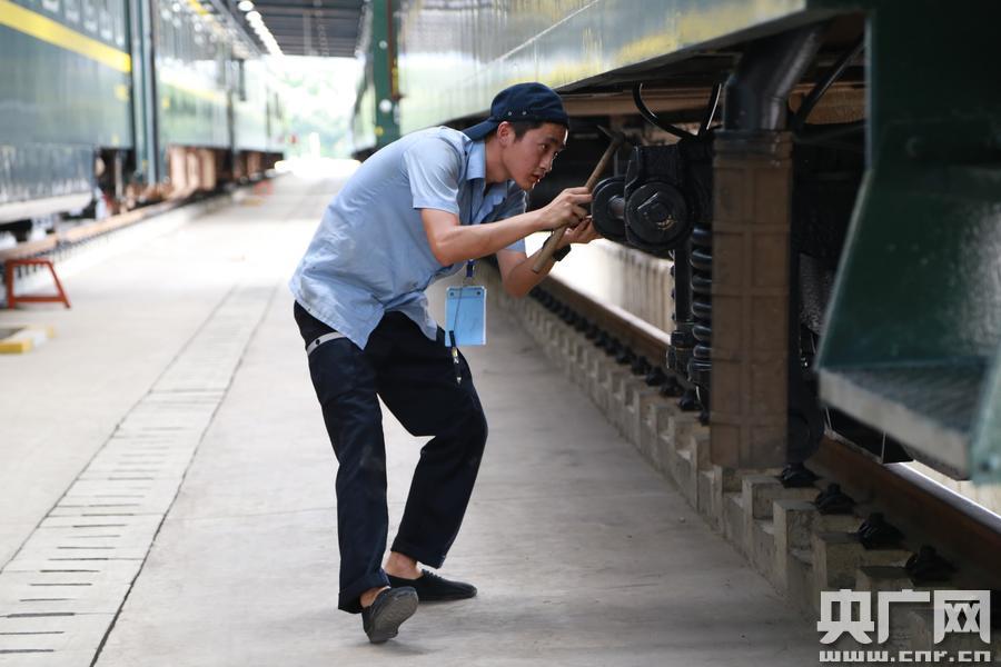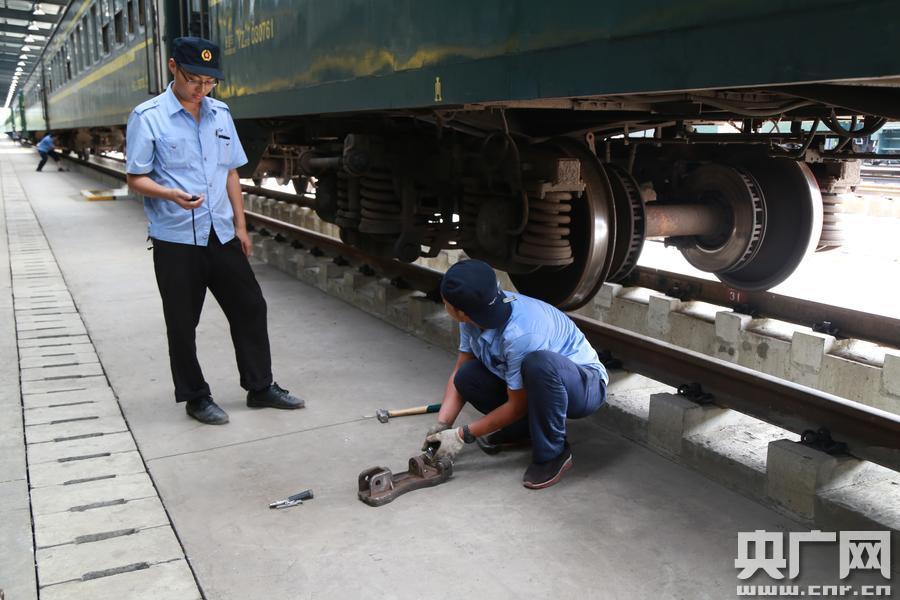 成都車(chē)輛段:訓(xùn)練場(chǎng)上練技忙(央廣網(wǎng)發(fā)李軻攝) K1線(xiàn)的備戰(zhàn)如火如荼,K20線(xiàn)的選手也沒(méi)有閑著!跋鹉z風(fēng)檔無(wú)破損,定檢標(biāo)記不過(guò)期,車(chē)體傾斜不過(guò)限!鼻喙ず斡砾i開(kāi)始進(jìn)行單車(chē)檢查了,“閉鎖不超135,全開(kāi)不超250”,他仔細(xì)的進(jìn)行車(chē)鉤狀態(tài)的檢查,隨后迅速地沿車(chē)體開(kāi)始檢查走行部轉(zhuǎn)向架!耙晃慌猿虚g隙符合要求,三位旁承間隙符合要求!焙斡砾i仔細(xì)地觀察著轉(zhuǎn)向架的各部狀態(tài)!昂芎,很好,保持這個(gè)速度!苯(jīng)過(guò)車(chē)下車(chē)上共計(jì)33分鐘的檢查后,何永鵬只遺漏了一個(gè)故障點(diǎn),教練隨即對(duì)整個(gè)檢查作業(yè)過(guò)程進(jìn)行了點(diǎn)評(píng),已是大汗淋漓的何永鵬一邊不住地點(diǎn)頭并在手賬本上記錄著教練傳授的“真經(jīng)”,一邊笑著說(shuō):“看來(lái)這要‘強(qiáng)基達(dá)標(biāo)’真的需要訓(xùn)練才能有真功夫”! -