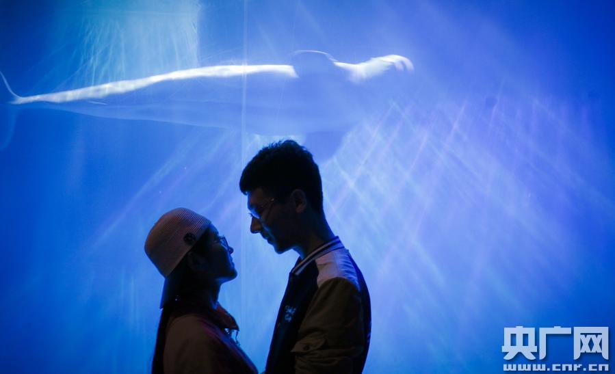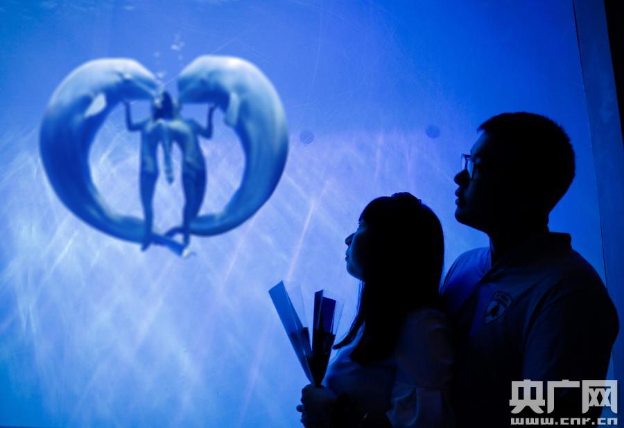 大連50對情侶共賞《白鯨傳奇》過七夕(央廣網(wǎng)發(fā) 孫亞楠 攝)