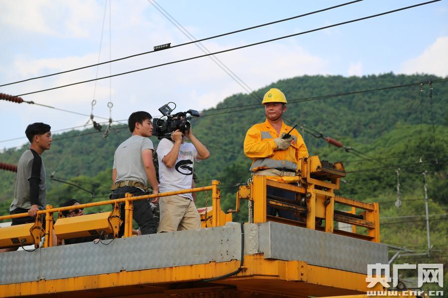 勞模當(dāng)上“男主角”(央廣網(wǎng)發(fā) 楊傳榮攝) 央廣網(wǎng)重慶8月29日消息(記者劉湛 通訊員劉永強(qiáng))8月27日,成都金靈世紀(jì)傳媒公司拍攝組一行13人來到重慶供電段拍攝成都鐵路局弘揚(yáng)工匠精神微電影《匠心》,白市驛接觸網(wǎng)檢修工區(qū)黨員工長肖成功當(dāng)了一回電視“男主角”。 肖成功是重慶供電段北碚供電車間白市驛接觸網(wǎng)運(yùn)行工區(qū)工長兼班組黨支部書記。自1989年5月退伍入路工作以來,肖成功虛心學(xué)習(xí)、忘我工作,在平凡的工作崗位上做出了不平凡的業(yè)績,先后10余次被評(píng)為重慶供電段“先進(jìn)生產(chǎn)者”“優(yōu)秀共產(chǎn)黨員”,2015年榮獲路局“勞動(dòng)模范”稱號(hào),2016年榮獲鐵路總公司“火車頭獎(jiǎng)?wù)隆,今年“五一”前夕,又榮獲了重慶市“勞動(dòng)模范”稱號(hào)。28年來,肖成功的足跡遍布重慶鐵路樞紐,但無論身在何處,他心系接觸網(wǎng)的情懷從未改變。正如工友們所說的,他沒有別的什么愛好,喜歡的只有接觸網(wǎng)。 -