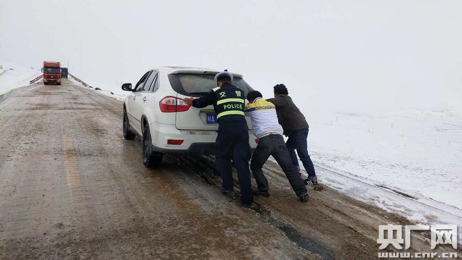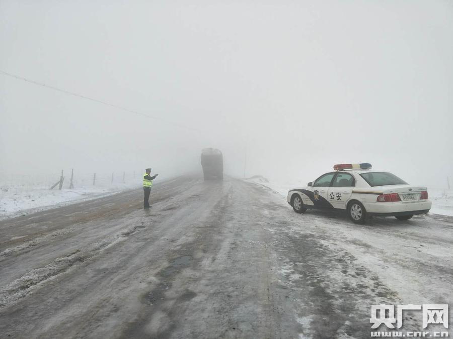 交警在積雪路段疏導(dǎo)交通 央廣網(wǎng)西寧10月9日消息(記者 葛修遠(yuǎn))受冷空氣影響,從10月9日夜間開始,青海省境內(nèi)海南、海北、玉樹、黃南、海東、西寧等地陸續(xù)出現(xiàn)不同程度降雪,大霧天氣,氣溫驟降。降雪導(dǎo)致部分路段出現(xiàn)積雪結(jié)冰,給節(jié)后上班造成了不同程度影響。 海東市化隆、互助、平安等地降雪嚴(yán)重,省道202線平安至循化大李加山段、省道203線、威北公路、樂都北山等路段均有降雪。海北州,國道227線105km一109km有間斷性積雪結(jié)冰;國道227線181公里處(景陽嶺)路面結(jié)冰;國道315線德州埡口120至130公里處,路面結(jié)冰,有濃霧,國道227線景陽嶺埡口181公里處,因下雪路面結(jié)冰,造成50余輛大小車輛滯留。西寧市周邊高速公路受降雪影響平阿高速公路青沙山段雪勢(shì)較大,并伴有大霧能見度低,路面積雪結(jié)冰,車輛通行受到影響。 針對(duì)這一安全風(fēng)險(xiǎn),青海交警總隊(duì)向社會(huì)發(fā)出安全提示:雨雪天行車,要降低車速,適當(dāng)增大跟車距離,減少變道超車,遇緊急情況提前采取制動(dòng)、減速措施;出行前應(yīng)提前配備防滑鏈等防滑設(shè)備;及時(shí)關(guān)注天氣情況,盡量避免雨雪天氣出行。 為確保交通安全,青海全省各級(jí)公安交管部門立即啟動(dòng)應(yīng)急預(yù)案和措施。青海交警總隊(duì)立即向各地發(fā)出《惡劣天氣預(yù)警》,要求各地一是加強(qiáng)冰雪路段的巡邏管控和疏導(dǎo);二是對(duì)存在嚴(yán)重安全隱患的路段及時(shí)通報(bào)運(yùn)管部門暫時(shí)停止客運(yùn)班線;三是迅速協(xié)調(diào)公路部門加強(qiáng)對(duì)冰雪路面的處置;四是通過微信微博及短信向社會(huì)發(fā)布路況信息。各地迅速應(yīng)對(duì),加強(qiáng)勤務(wù)安排。 青海全省共出動(dòng)警力427人次,警車159輛次,全省未發(fā)生因冰雪道路的人員傷亡交通事故,未發(fā)生長(zhǎng)距離大面積擁堵。