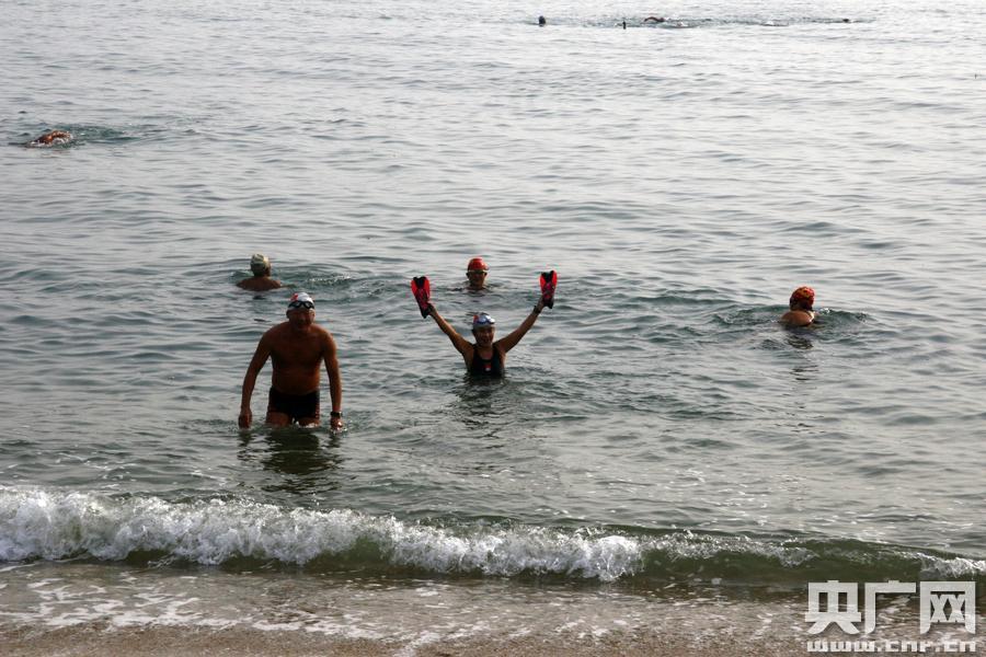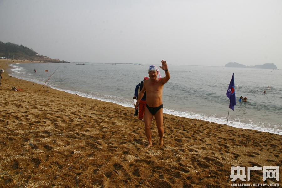冬泳的老人們(央廣網(wǎng)記者賈鐵生 攝) 央廣網(wǎng)大連11月1日消息(記者張四清 賈鐵生)2017年11月1日下午,遼寧省大連市傅家莊海濱浴場里,數(shù)十名大連市冬游協(xié)會的老人在此冬游。大連市冬游協(xié)會秘書長韓俊龍告訴記者,協(xié)會有26支隊伍,共計2千多名會員,大家在樂于冬游之時,還經(jīng)常在海邊撿拾垃圾,救護溺水人員,越來越多的人加入到冬游的隊伍中。 在冬游的人群中,有兩位80多歲的老人,老人堅持冬游已經(jīng)20多年了。老人說,堅持冬游自己的感冒少了,心情也愉悅了許多,為兒女和社會減輕負擔(dān),希望大家通過冬游強身健體,有生之年還能為社會出一份力,為中國夢的早日實現(xiàn)添磚加瓦。 -