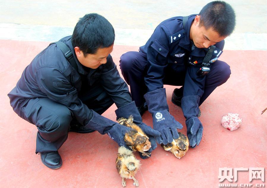 被救助的國家二級保護動物倉鸮(央廣網發(fā) 郭麗娟 攝) 央廣網普洱1月5日消息(記者李騰飛 通訊員郭麗娟 常國軒)1月2日,云南省寧洱縣警民聯手成功救助了3只國家二級保護動物小幼鸮。 當天上午10時左右,寧洱縣森林公安局接到寧洱縣同心鎮(zhèn)林業(yè)服務中心送來的三只被雨水淋透的“猴面鷹”。2日凌晨,同心鎮(zhèn)那柯里的一位李姓村民到農田干活時,途經同心治超點公路邊時,聽見路邊排水溝里發(fā)出呼呼的響聲。他尋聲去找,發(fā)現水溝里窩著三個貓頭鷹在瑟瑟發(fā)抖。李大哥找來紙箱把它們裝好,準備拿回家救助,恰巧途中遇到了正在林區(qū)巡查的林業(yè)服務中心工作人員,后轉交至森林公安。 被送到到縣森林公安局時,三個小家伙躲在紙箱里非常虛弱,體型較小的一只已經奄奄一息,另一只的喙也受了傷。民警們立即用干毛巾將淋濕的“猴面鷹”擦干,使用消毒水對傷口進行清創(chuàng),并買來了鮮肉和葡萄糖水一點一點的給它們喂食。 經過民警一天的精心照顧,三個小家伙精神狀態(tài)有所好轉,慢慢地開始自主進食。 經專業(yè)鑒定,三只鳥學名叫倉鸮,當地人又稱猴面鷹、猴頭鷹等,是夜行猛禽,屬于國家二級保護動物。 鑒于這三只倉鸮均為幼鳥,且森林公安不具備飼養(yǎng)條件,寧洱縣森林公安局于1月3日上午聯系并將三只倉鸮送往普洱市野生動物收容救助中心進行進一步救助。