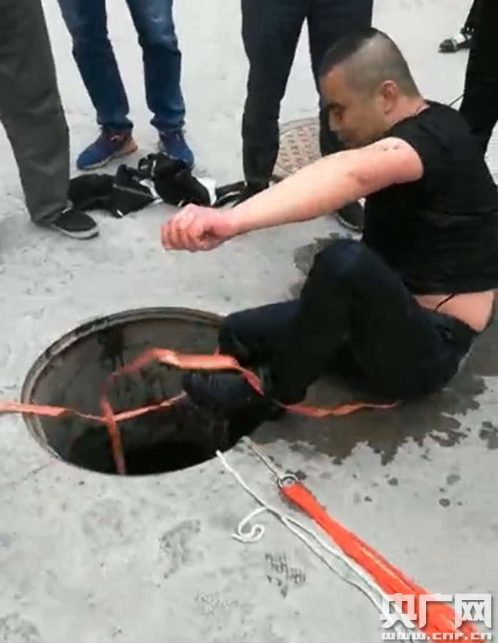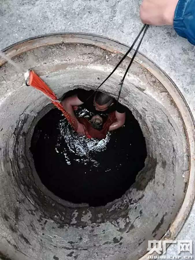 李明君將孩子救出后從陰井中出來(西寧市民現(xiàn)場(chǎng)手機(jī)視頻截圖) 揪心:3歲男童不慎掉進(jìn)化糞池 監(jiān)控視頻顯示,一名女子帶著兩個(gè)孩子在小區(qū)院內(nèi)玩耍,當(dāng)女子正在照看較小的孩子時(shí),另一名較大的孩子獨(dú)自走到一口陰井的井蓋上。忽然井蓋一翻,孩子掉進(jìn)了井里。女子看到后,立刻跑過去掀起井蓋看了一眼,然后慌張地跑向附近的一名男子求救。男子立刻跑到井邊,另一名女子也跟著趕到。男子趴在井口看了一下,便下到井里,抽出褲腰帶,將一端遞到隨后趕來的女子手中,自己拽著另一端就下了井。 -