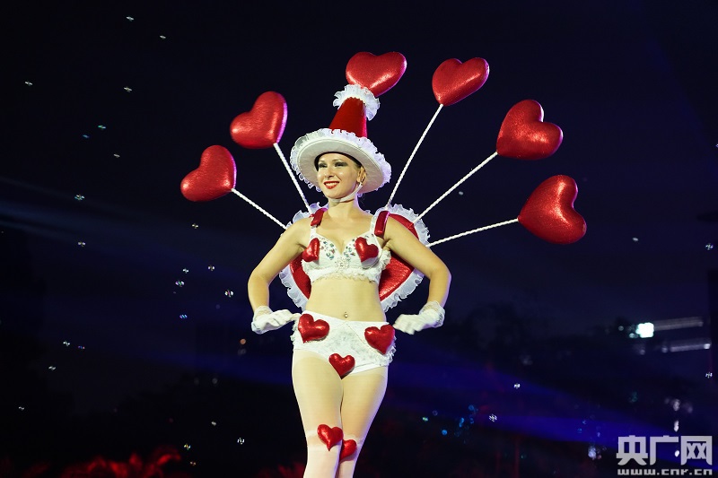 在電音節(jié)現(xiàn)場(chǎng),幻彩的燈光和強(qiáng)勁的音浪,數(shù)百名來(lái)自世界各地的DJMC、模特、舞者悉數(shù)登上T臺(tái)與游客互動(dòng)。記者注意到,在視覺(jué)和聽(tīng)覺(jué)的雙重影響下,游客們紛紛揮舞手中的氣球棒,甚至身體也跟著搖擺起來(lái)。