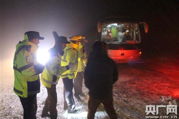 甘肅36名游客雪夜被困青海祁連交警等部門雪夜救援(央廣網(wǎng)發(fā) 被困大巴車游客提供)