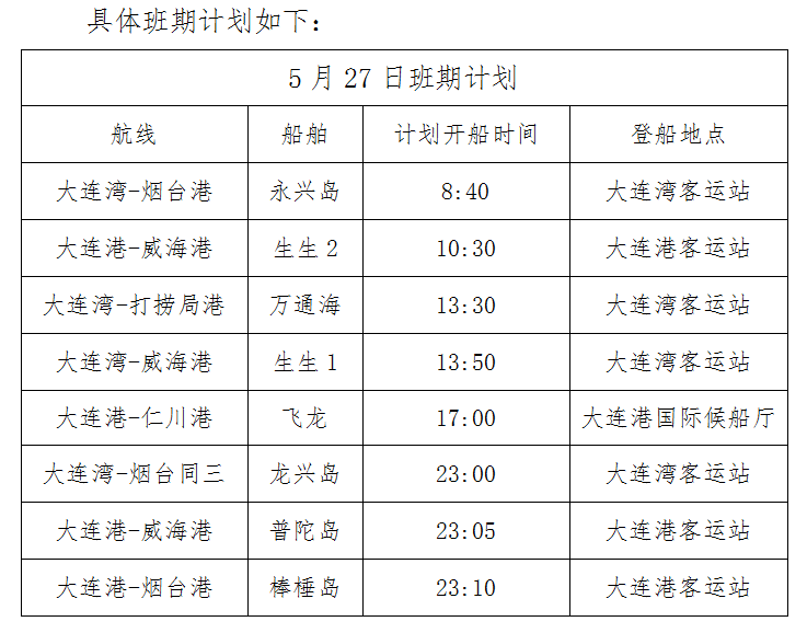 央廣網(wǎng)大連5月27日消息(記者賈鐵生)受大風(fēng)天氣影響,大連港客運總公司5月27日對5個海上客運航班班期進(jìn)行臨時調(diào)整,其中停航兩班,延航三班。