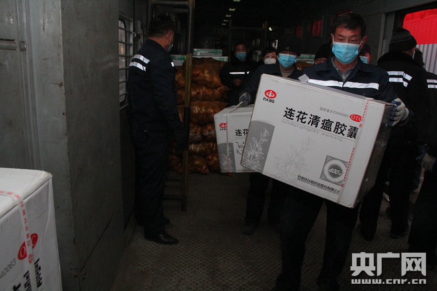 央廣網(wǎng)西寧1月31日消息(記者葛修遠(yuǎn))1月30日,由拉薩開往廣州的Z266次列車安全正點(diǎn)到達(dá)了西寧火車站,上下車的人流中,在行李車廂門口,忙碌著上貨的身影,尤其引人關(guān)注,據(jù)了解這是中國(guó)鐵路青藏集團(tuán)公司捐贈(zèng)發(fā)往武漢局集團(tuán)公司的4000盒藥品和15噸蔬菜。10點(diǎn)55分,列車啟動(dòng),帶著高原人民的深情厚誼奔赴武漢。列車在停靠武漢車站時(shí)不安排旅客乘降,將物資卸車后繼續(xù)前往廣州。