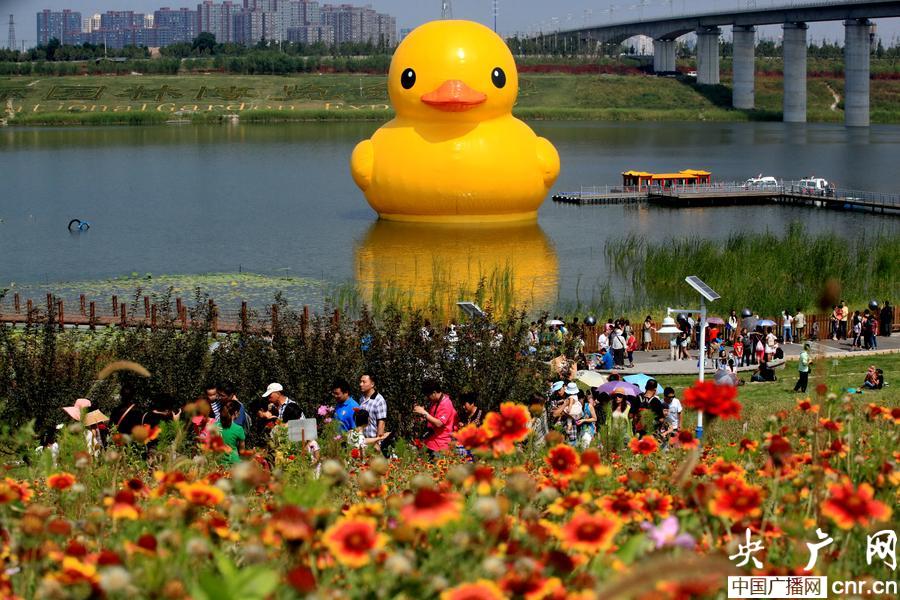 央廣網(wǎng)北京9月8日消息(記者李文蕊)秋日的北京又到了旅游的黃金季節(jié)。大黃鴨亮相園博湖的首個(gè)周末游客明顯增多,開(kāi)園僅1小時(shí),1.1萬(wàn)人涌入園博園。截止下午17點(diǎn),超過(guò)5萬(wàn)人來(lái)到了園博園,夜場(chǎng)還將吸引游客從四面八方趕來(lái)源源不斷地來(lái)到園博園。