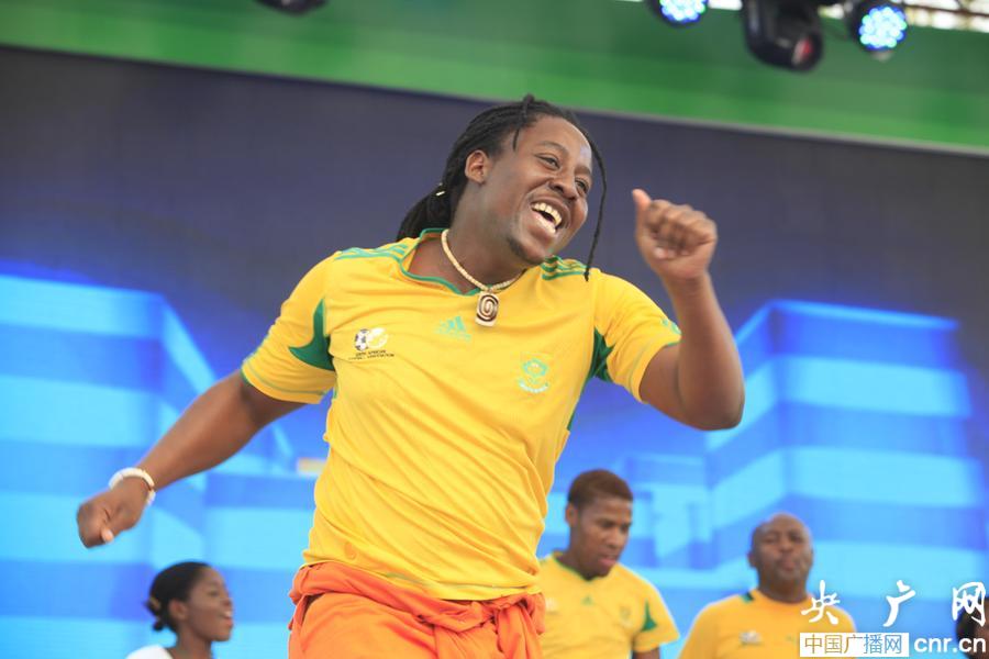 來自于非洲山村講不同語言的礦工所創(chuàng)的長筒膠靴舞,來自于南非自由邦省的巴索托人所創(chuàng)的巴索托舞,來自于東部和西部開普省的科薩舞,以及融合著非洲舞和現(xiàn)代舞的非洲舞蹈薈萃等等,配合著或急或緩、節(jié)奏多變的非洲鼓聲,北京園博會成為南非舞者盡情搖擺的舞臺。