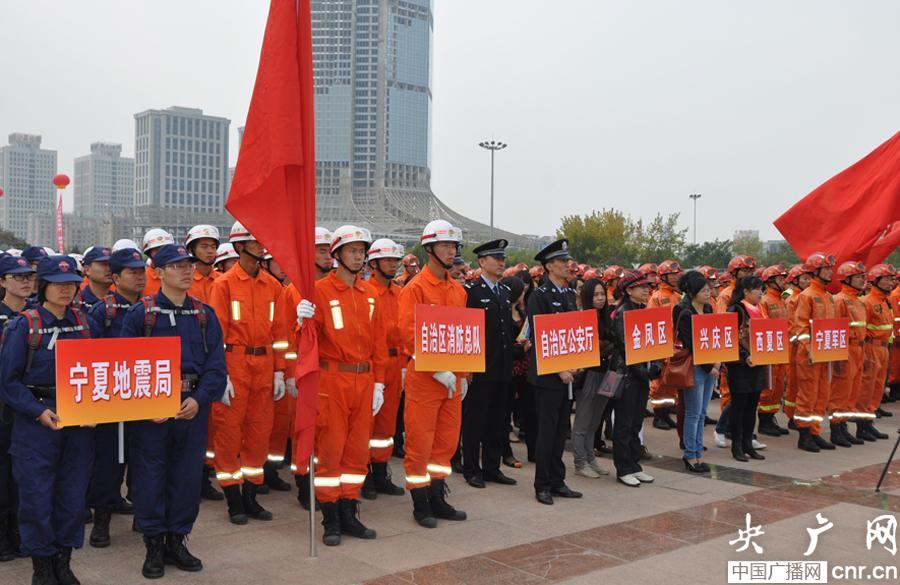 央廣網(wǎng)銀川10月12日消息(記者廉軍 通訊員李大進(jìn) 王浩樺)今天上午,寧夏回族自治區(qū)政府聯(lián)合上百家相關(guān)單位在銀川市人民廣場(chǎng)舉辦寧夏回族自治區(qū)公眾應(yīng)急常識(shí)大型圖片展暨應(yīng)急救援演練。武警、消防、衛(wèi)生、安監(jiān)、城建等應(yīng)急辦成員單位參加了此次活動(dòng),寧夏銀川消防官兵還有針對(duì)性的進(jìn)行了消防應(yīng)急救援演練。