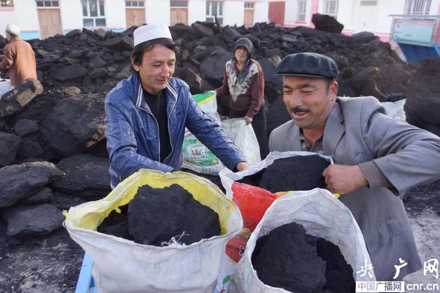 央廣網阿瓦提10月31日消息(記者吳卓勝 訊通訊員李昆鵬) 新疆阿瓦提縣多浪鄉(xiāng)貧困戶昨天領取了政府免費發(fā)放的“愛心煤”。