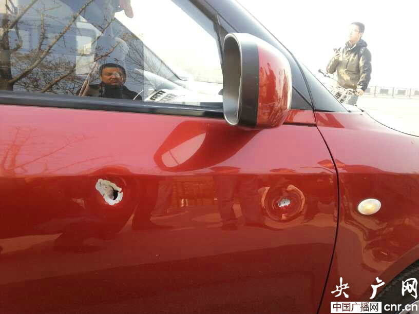 另有一名女司機,她的車輛也是由東向西行駛時,發(fā)生爆炸,車門被炸了兩個深坑。她向記者介紹時,聲音發(fā)顫,說當(dāng)時看到省委門口冒起一股白煙,就聽到巨大爆炸聲,她當(dāng)時都驚呆了,下意識開著車往前走,隨后又聽到多聲爆炸。
