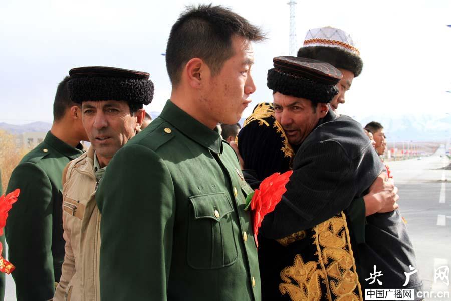 駐地塔吉克族農牧民群眾與退伍老擁抱告別(央廣網記者 張雷 攝)