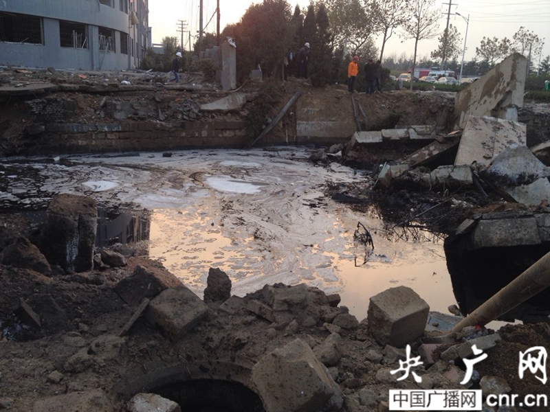 青島油管線爆炸35人死 地面崩裂多車被掀翻[組圖]