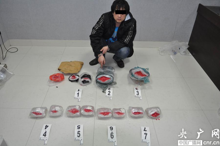 犯罪嫌疑人指認(rèn)其制造販賣的毒品(央廣網(wǎng)記者 張壘 攝)