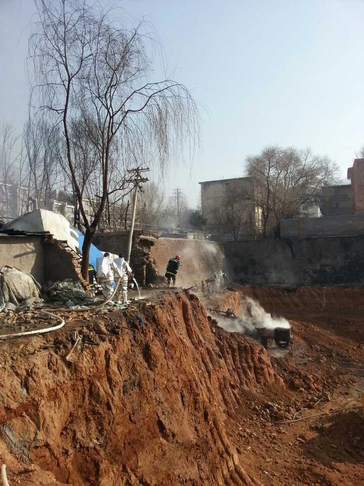央廣網西寧12月18日消息(記者葛修遠)今天(18日)中午西寧市南川東路汽車制造廠附近一個工地發(fā)生天然氣管道泄露事故并引發(fā)大火,目前大火已經撲滅,記者在現(xiàn)場看到一臺施工機械被引燃,還在散發(fā)著熱氣。