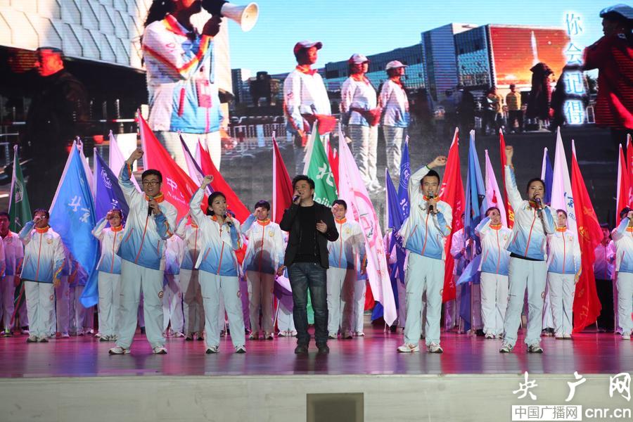 繆杰與志愿者演唱《愛如花朵》(央廣網(wǎng)記者 李文蕊 攝)