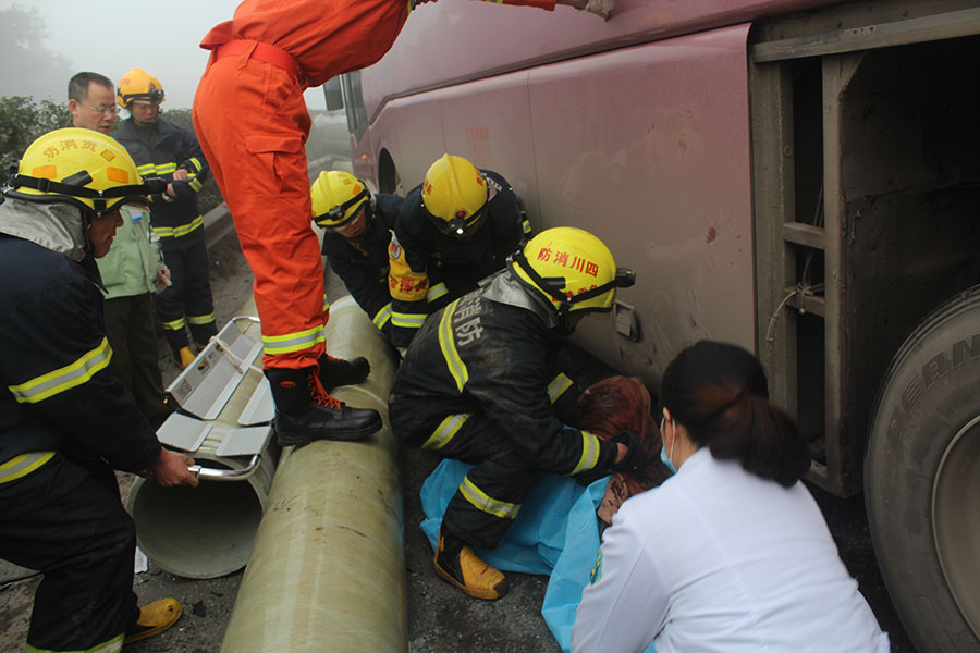 據記者現(xiàn)場了解,事發(fā)地先后發(fā)生兩起連環(huán)追尾事故,第一起事故造成包括1輛食用油罐車、2輛小轎車、3輛大客車和5輛大貨車在內的11輛車連環(huán)追尾相撞,其中一輛客車還發(fā)生側翻。事故發(fā)生后,大量玻鋼管、鋼筋等貨物撒落一地,整個交通完全中斷。而距離第一現(xiàn)場不到300米處,1輛小轎車和2輛貨車因閃避不及再次發(fā)生追尾和擦碰事故。消防員和120到場后,迅速對死傷者展開救援,高速交警部門也第一時間對現(xiàn)場實施了交通管制。