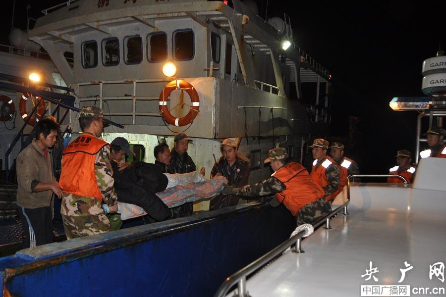 5時56分,海警船只在浯嶼島西側發(fā)現(xiàn)了報警的閩龍漁66890號漁船,海警官兵和船上漁民一同將傷員接上警艇,隨后警艇立即全速返航。