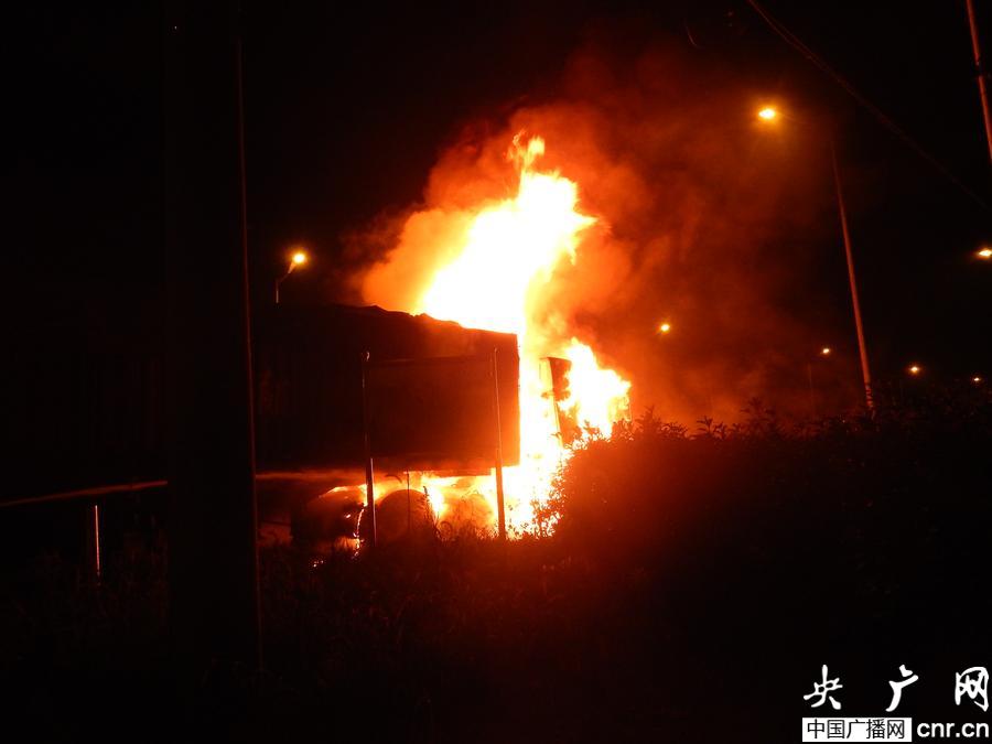 央廣網(wǎng)寧波1月7日消息(記者劉發(fā)丁 曹美麗)今天凌晨1點39分,61省道浙江余姚段馬諸加油站前,一輛大型裝煤貨車突然自燃,貨車輪子猛烈燃燒,遠遠看去好像兩個風(fēng)火輪甚是嚇人。經(jīng)過消防人員2個多小時的處置,大火終被撲滅。