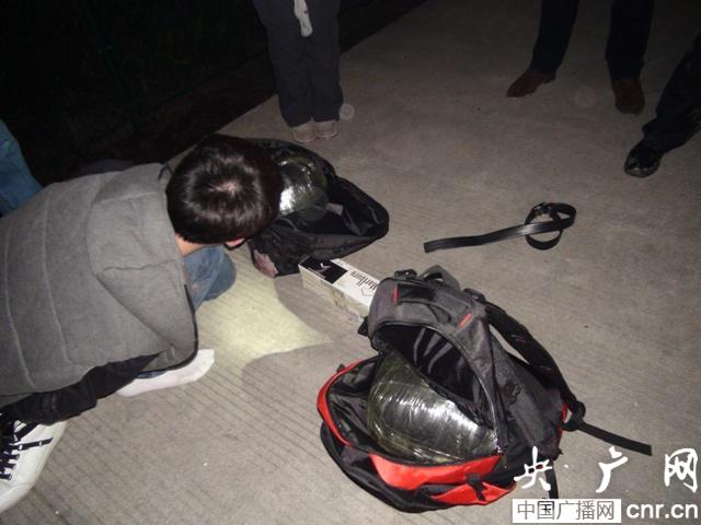 深圳海關(guān)緝私人員在嫌疑人背包里搜出包扎嚴(yán)密的毒品(央廣網(wǎng)發(fā) 張業(yè)成 攝)