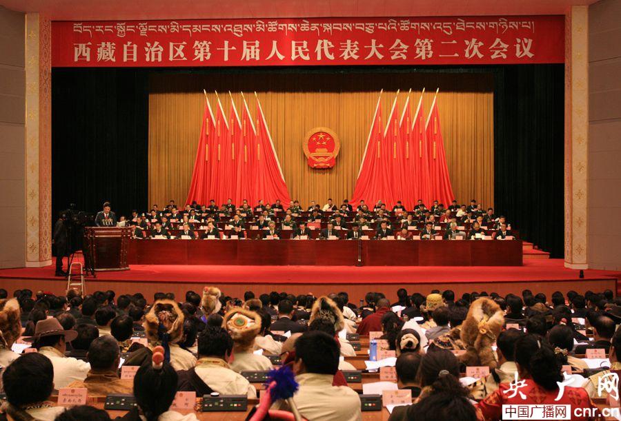 央廣網(wǎng)拉薩1月10日消息(記者索朗達杰 普布次仁)今天上午,西藏自治區(qū)第十屆人民代表大會第二次會議在拉薩隆重開幕,西藏自治區(qū)政府主席洛桑江村代表自治區(qū)人民政府向大會作政府工作報告;仡櫩偨Y(jié)2013年工作并安排部署了2014年工作安排。