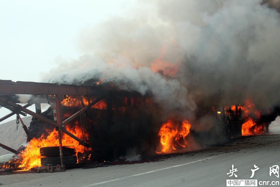 央廣網(wǎng)蘭州1月13日消息(記者焦健 通訊員方矩)一輛車(chē)牌為陜AG1790掛的30米加長(zhǎng)貨車(chē),行駛在國(guó)道310線甘肅省天水市麥積區(qū)伯陽(yáng)鎮(zhèn)保安村段時(shí)突然起火,消防官兵經(jīng)過(guò)近四小時(shí)的不懈努力,將大火終撲滅。