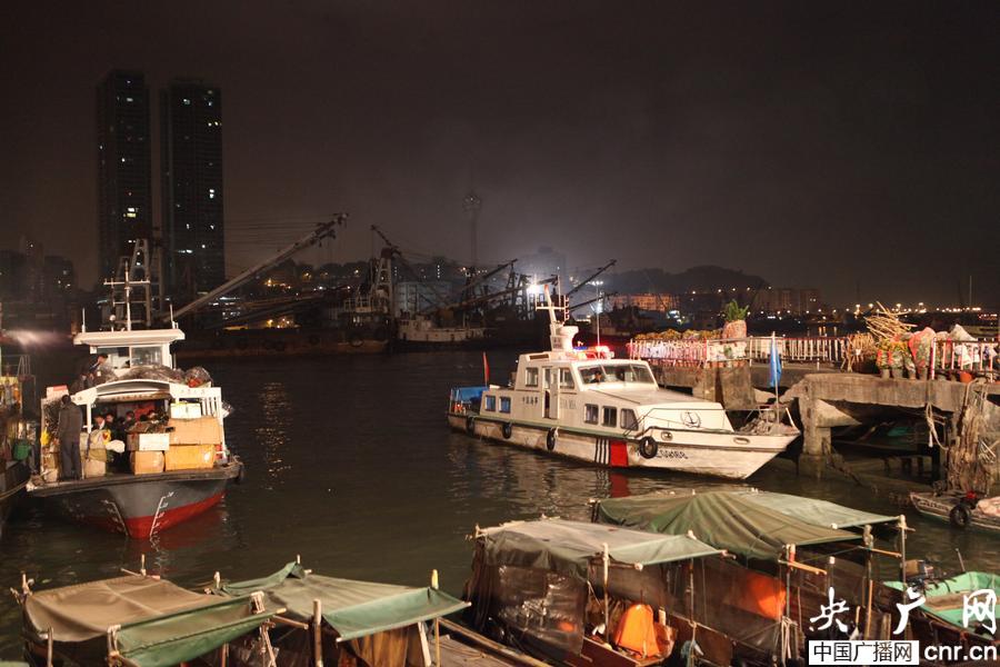 凌晨的濠江江面泊船密布,“花婆船”和送人艇只能在這些停泊在江面的船舶中穿行,不時還有其他船只穿行其間。從凌晨4點多, 7名海事執(zhí)法人員和一艘海巡船就已抵達灣仔碼頭,他們協(xié)助“花婆船”的裝載與航行,叮囑船上人員穿著救生衣、注意避讓,要求船員嚴守規(guī)定,杜絕超載航行、人貨混載、船首超越航行等違規(guī)行為。在海事執(zhí)法人員的指揮下,濠江水上交通依然保持安全有序。