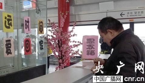 央廣網北京1月27日消息(記者李文蕊 通訊員孫立杰)春節(jié)是團圓的日子,春運也是軌道交通最繁忙的階段之一,在為攜帶著大包小包回家過年的乘客服務的同時,北京地鐵員工也考慮到了因為各種原因不能回家的乘客,從臘月廿三到正月十五,每天10點至15點,乘客可以在15號線后沙峪站站臺層免費領取明信片,現場填寫完后投入車站設立的“思念箱”內,地鐵員工會定期將明信片郵寄至目的地址,將乘客的祝福送到遠方的家中。