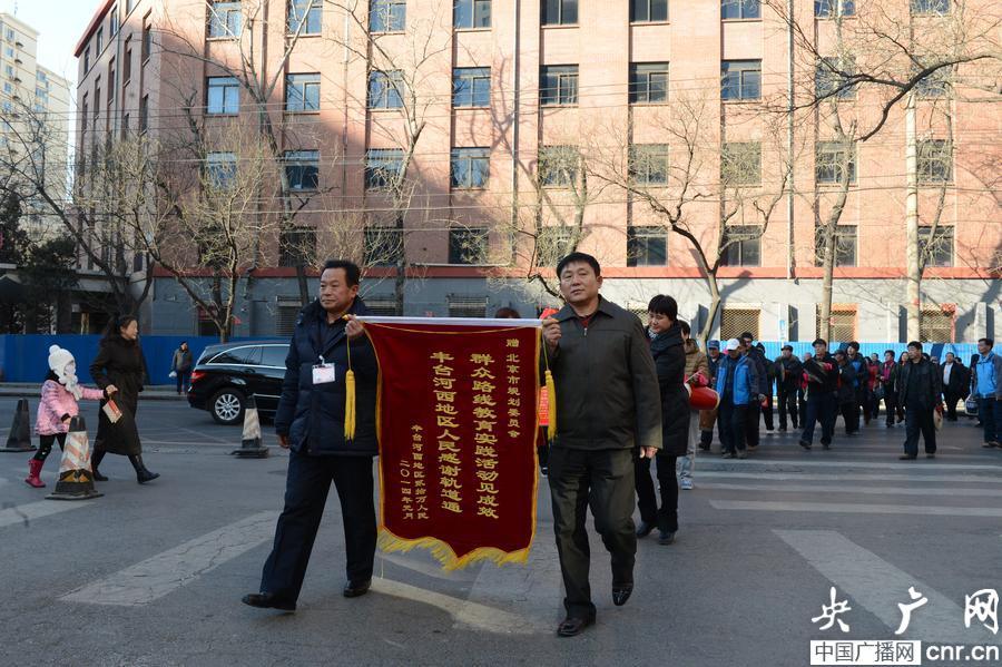 群眾代表向北京市規(guī)劃委贈(zèng)送感謝信和錦旗(央廣網(wǎng)發(fā) 魯忠獻(xiàn) 攝)