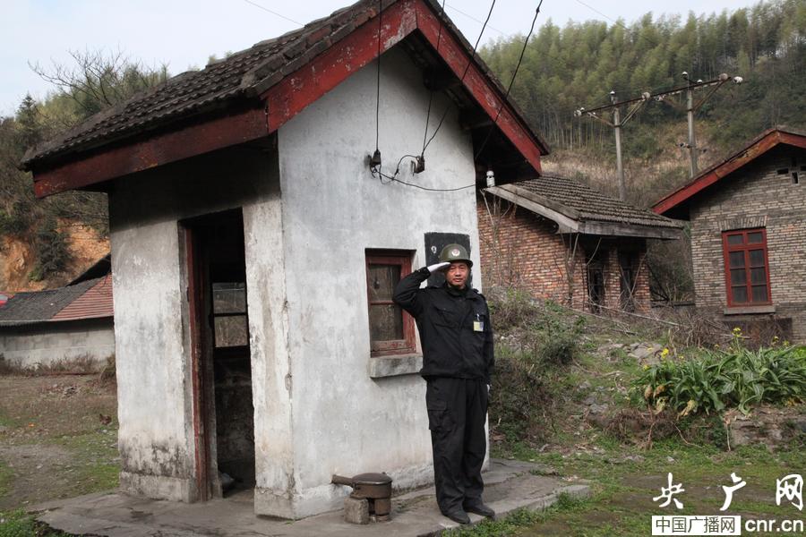 張應(yīng)朝的工作崗位就在隧道口十來米外,抬頭看,是望不到頂?shù)倪B綿大山。幾乎是每隔半小時,載客或載貨的列車就要在隧道里鉆進(jìn)鉆出。張應(yīng)朝筆直地站立著,向每列火車敬個禮,然后跑回小崗?fù)ぃ瑢懞冒踩涗。張?yīng)朝說,看火車,就是他們的工作。