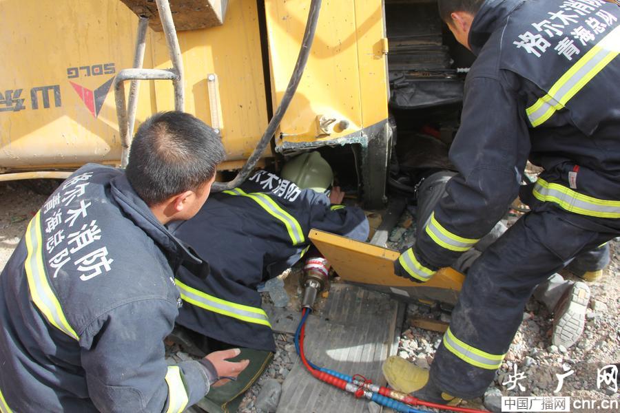 據(jù)悉,事發(fā)地為格爾木市開發(fā)區(qū)東出口收費站外30公里處,事故發(fā)生地距公路仍有5公里路程,且全部為沙漠便道,搶險救援消防車等大型車輛無法進入,救援官兵只能攜帶部分破拆和救援器材換乘越野車輛向事發(fā)地點進發(fā),由于道路砂質(zhì)松軟,車輛只能慢速行駛。到達現(xiàn)場后消防官兵發(fā)現(xiàn)一輛大型鏟車“四腳朝天”,墜翻在一小沙坡下方,駕駛員被壓在近7噸重的鏟車下面,可用的救援空間十分狹小。